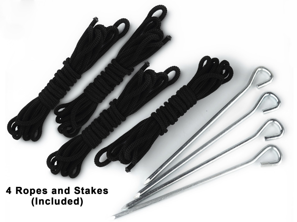Heavy duty hex shape 40 mm. aluminum hardware gives the tent extra strength when exhibited outdoors, our frame is a serious upgrade from steel framed tents that bend and buckle easily. Telescopic legs allow you to adjust the height, and the interior lattice expands the tent interior with the crank of a handle. Each leg has a foot plate ready to be staked to the ground. (Ropes, stakes, and standard carrying bag included with hardware).