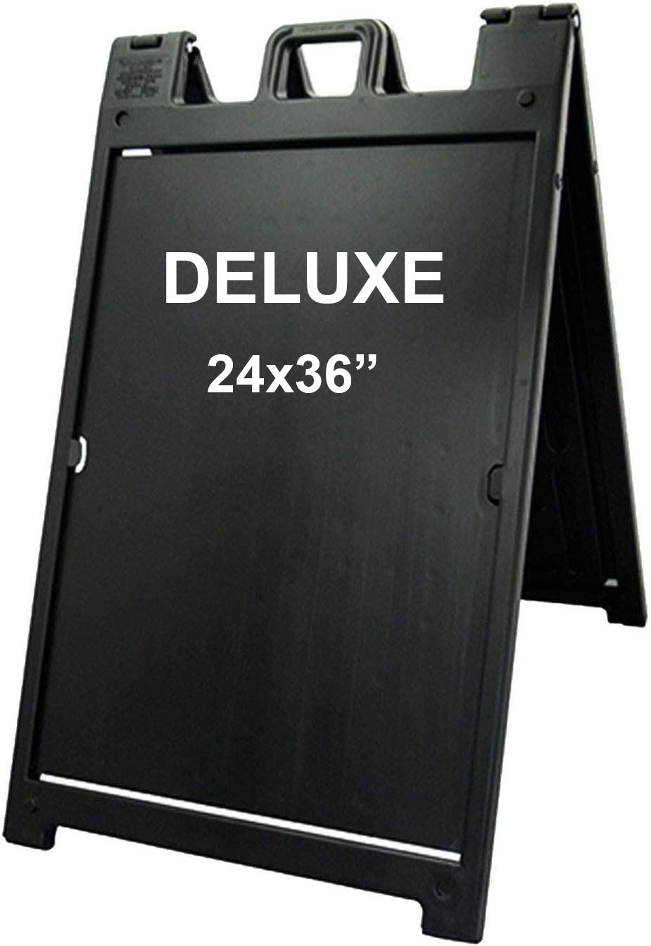 This heavy-duty plastic A-frame is the perfect solution for sidewalk advertising. The frame can be filled with sand or water for greater stability. The double sided hardware includes regressed sign area that helps to protect sign faces. Up to two graphic prints with protective matte lamination are available at no additional cost.